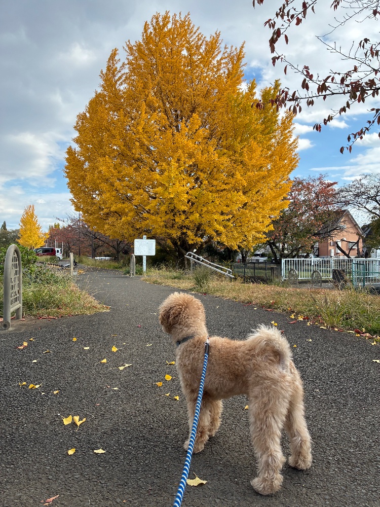 秋を楽しみながらお散歩の仕事をさせていただいております